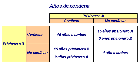 Se puede observar como cualquiera de los condenados ve disminuir su condena si acusa a su compañero, y ello con independencia de la decisión que adopte el compañero de acusarle a él o no.